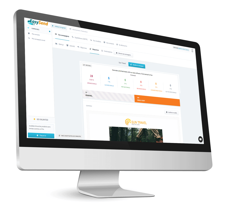Créez des campagnes emailing en quelques clics et envoyez vos emails en illimité pour 59€ / mois